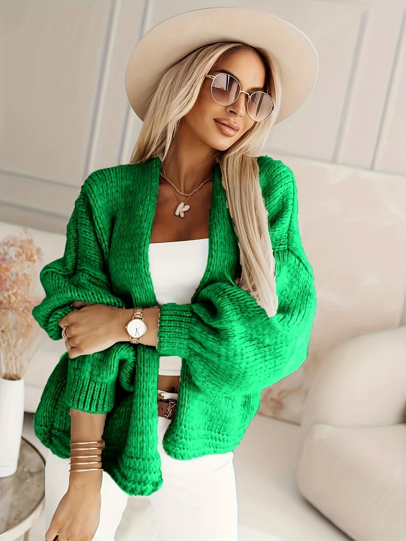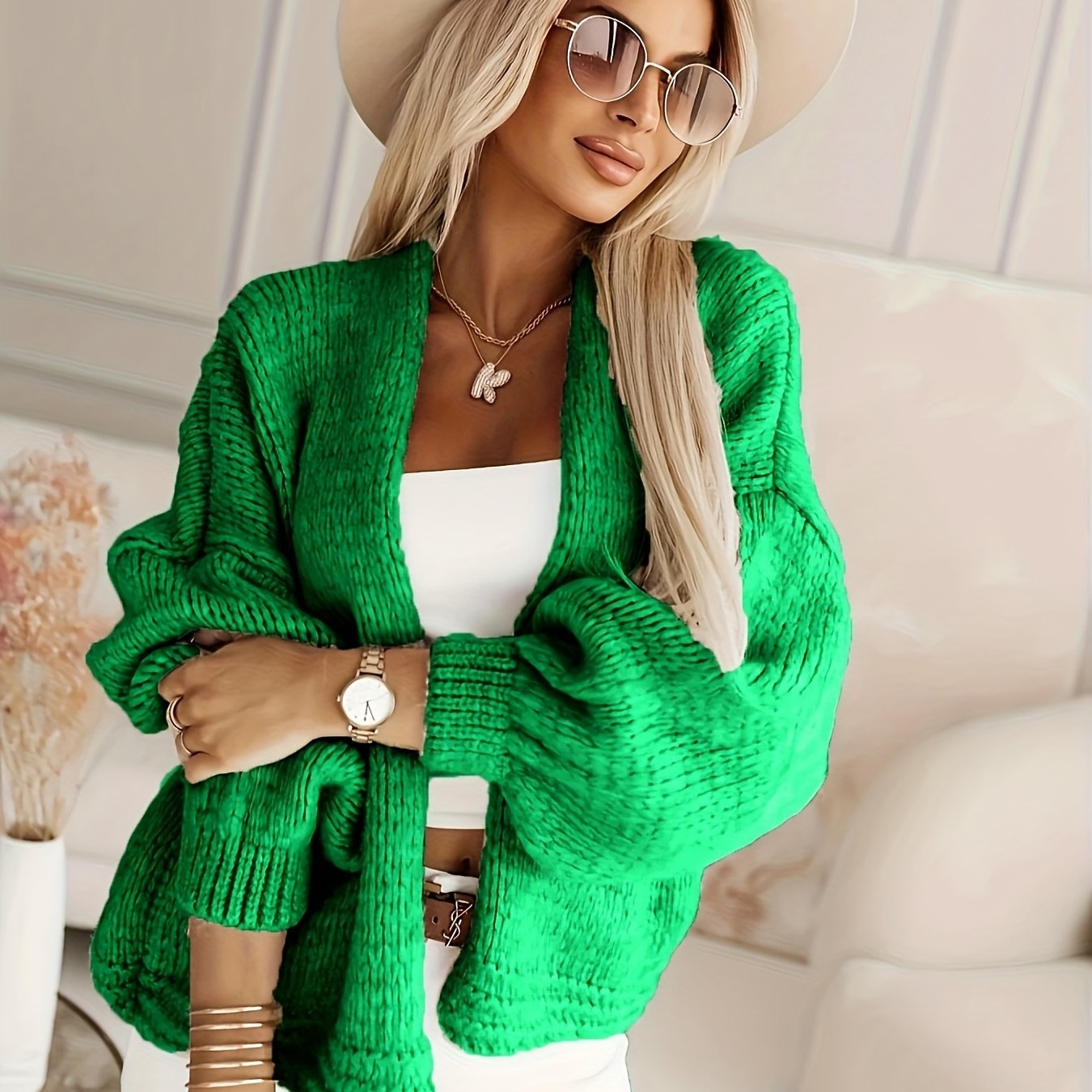 Front™ | Beigen Avointa Edestä Naisten Neule - Rentoa Istuvuutta Pitkä Neule Syksy/Talvi, Täydellinen Päivittäisiin Ja Virallisiin Asuihin - Mukava Chic Yli-Kokoinen Neule Tekstuurikankaasta