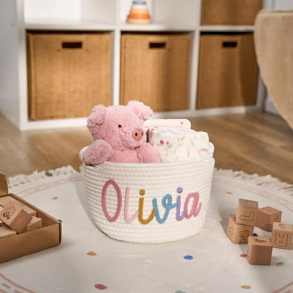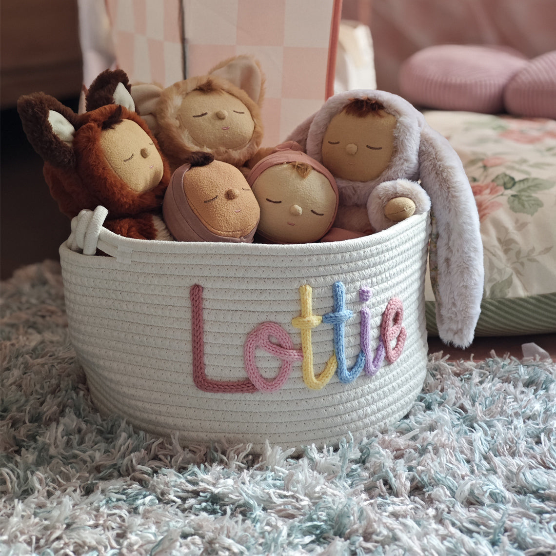 Lisää pikkuisen lastenhuoneeseen persoonallinen tunnelma käsin neulotuilla koreilla, jotka on valmistettu 100 % luonnollisesta puuvillalangasta. Nämä räätälöitävät, ympäristöystävälliset korit sopivat täydellisesti vauvakutsuille, äitiyslahjoiksi ja lastenhuoneen sisustukseen - ne ovat turvallisia herkälle iholle ja niitä voi vaalia vuosien ajan.