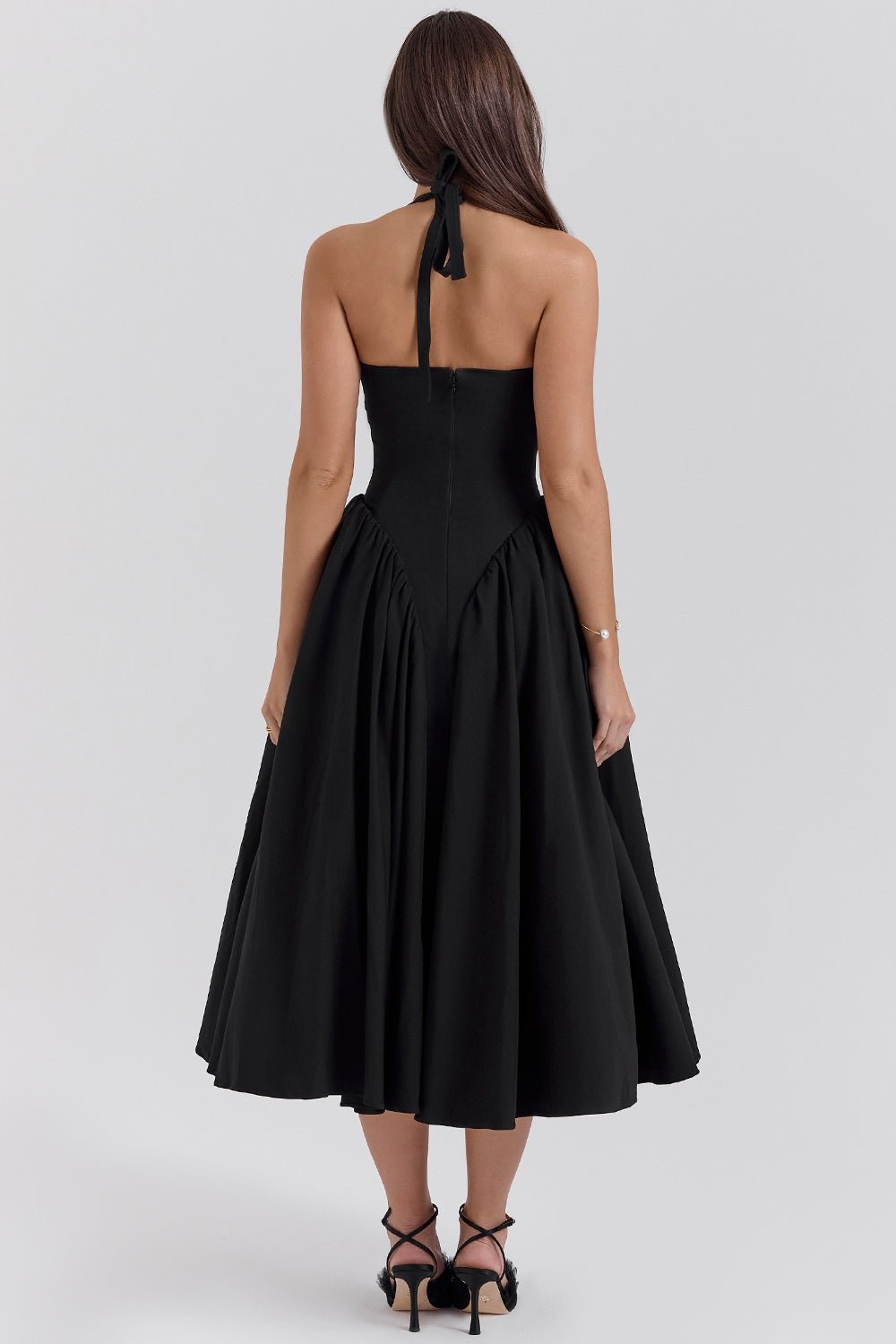 Tyylikäs Shannah mekko erottuu muotoilullaan, elegantilla midi-pituudellaan ja imartelevalla U-pääntiellään. Laadukas viimeistely ja pehmeä kangas luovat voimakkaan ilmeen – ihanteellinen illallisille, tapahtumiin tai erityisiin tilaisuuksiin.